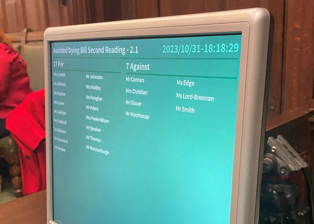 They ultimately voted for progressing the legislation through the Island's parliament, moving it to the clauses stage, with 17 for and seven against.