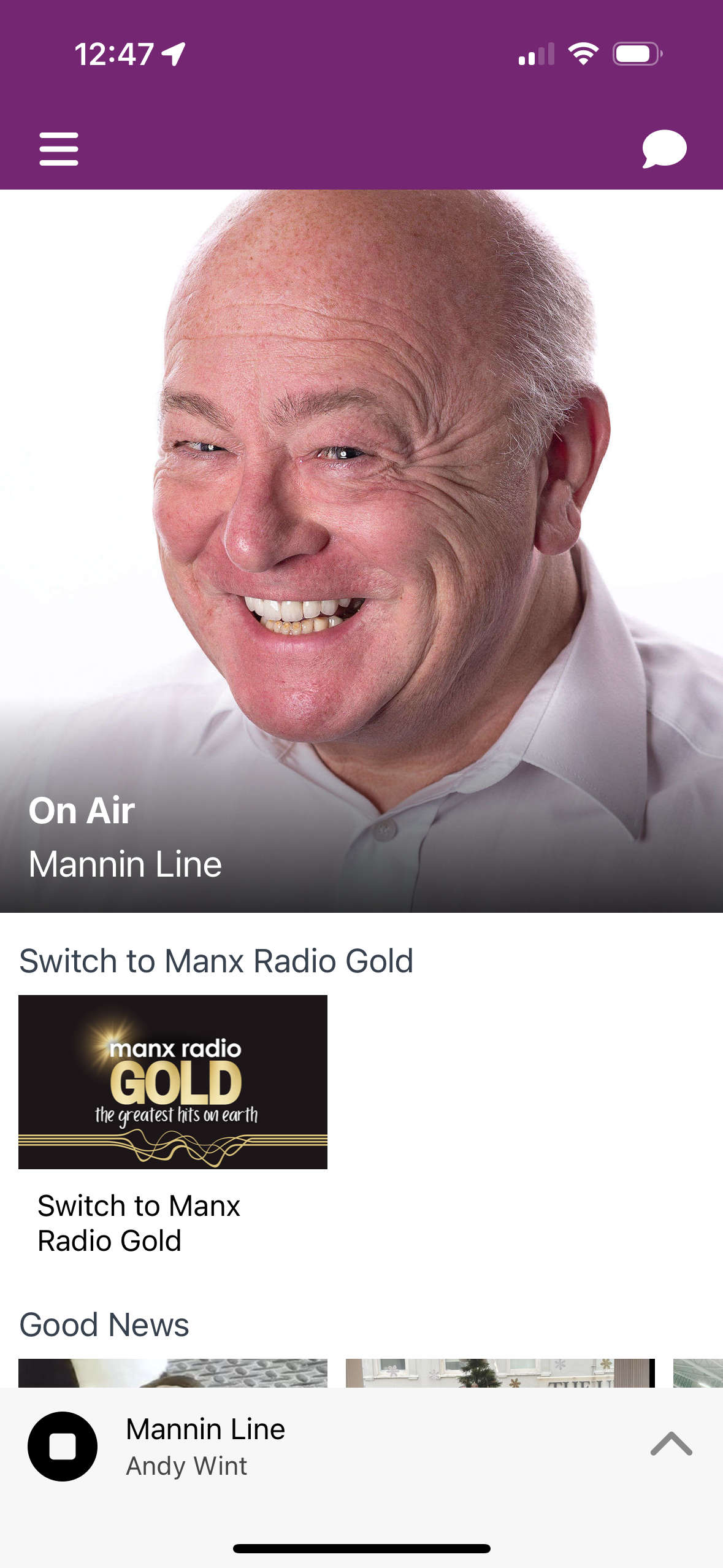 Both our FM, AM and GOLD services are available via the Listen Live button on manxradio.com and the service is available via a high quality stereo stream enabling the best quality listening of the programming that is solely broadcast on our AM service.